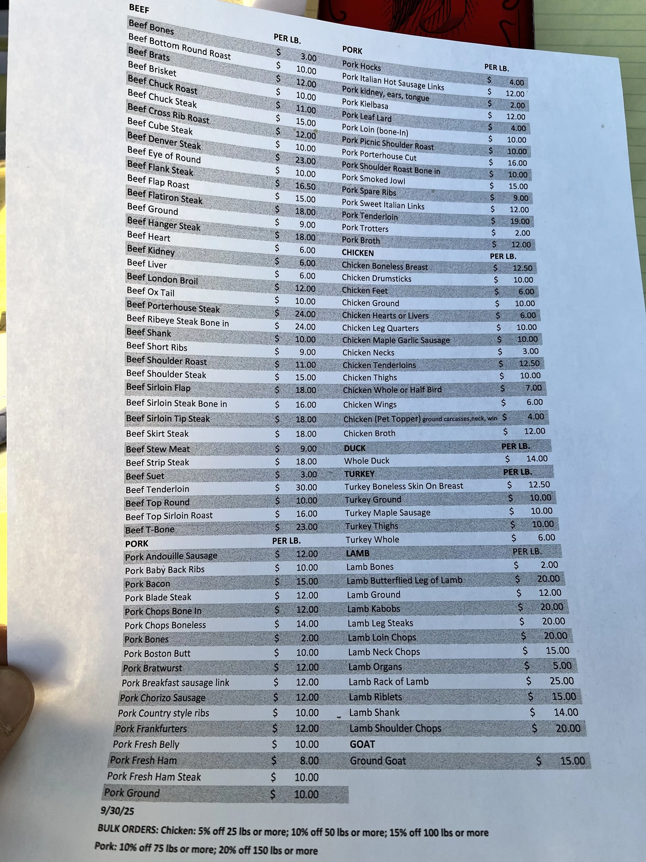 Northern Farm & Flowers - (beef, pork, chicken, turkey, see image for list, I will update website so it’s easier to read this week!)